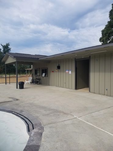 The club house has three full bathrooms with showers, a half bath, a laundromat, and a gathering room. If you have a large group and want to use the patio for parties, we can schedule that. Just off the clubhouse area is a playground with horse-shoe pits, corn hole, washers, tether ball and more.